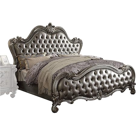 Amazon Com Benjara Queen Size Wooden Bed With Cabrio Legs And Crown Molding Silver Furniture Decor