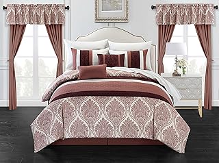 Amazon Com Chic Home Rory 24 Piece Comforter Set Color Block Quilted Embroidered Complete Bed In A Bag Bedding Sheets Bed Skirt Decorative Pillows Shams Window Treatments Curtains Included King Black Home